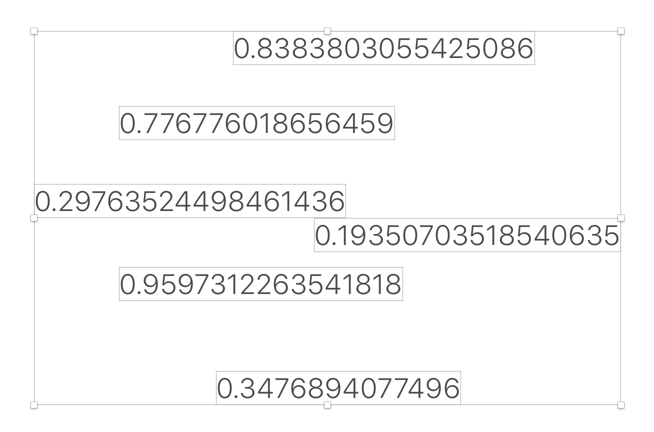 If you now add a bunch of Text Layers to a new document, and select Data > datademo, you’ll see what our sample plugin is doing: generating random numbers and filing the text layers with them.
