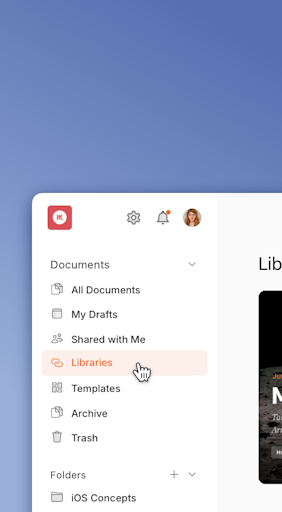 Sync up with a shared Workspace for all your team’s files, libraries and drafts.