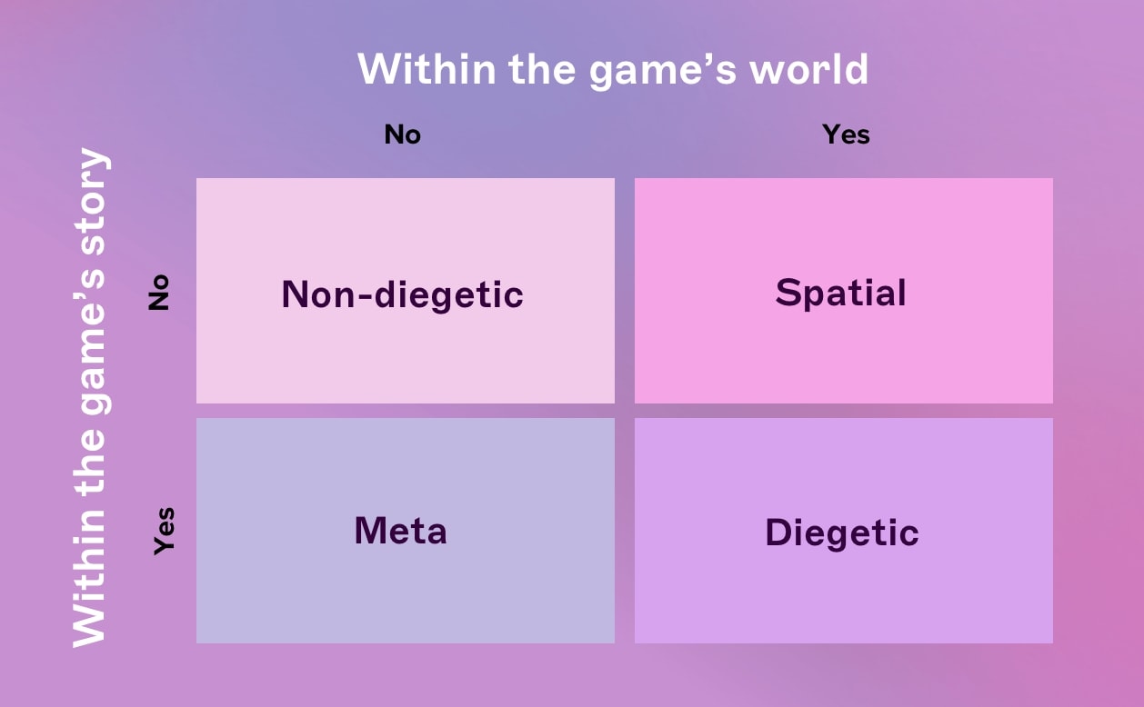 - Those cues can be diegetic, non-diegetic, spatial or meta.